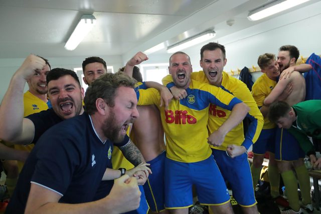 Stockton Town turned in a magnificent performance on Saturday to beat Alnwick Town 6 1 and secure the points required to claim promotion to Division
