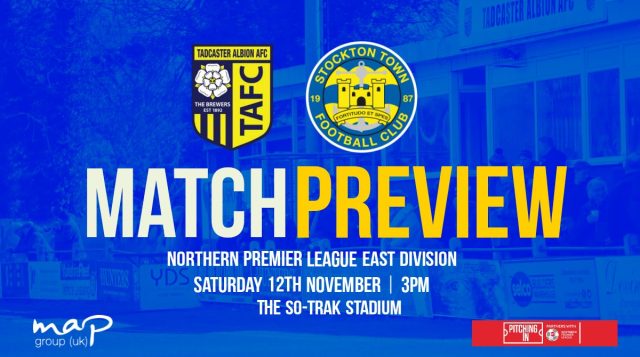 TADCASTER ALBION v STOCKTON TOWN COMPETITION: Northern Premier League East DATE: Saturday 12th November 2022 KICK-OFF: 3:00PM ENTRY: £9 Adult, £6 Concession, £2 Children GROUND: