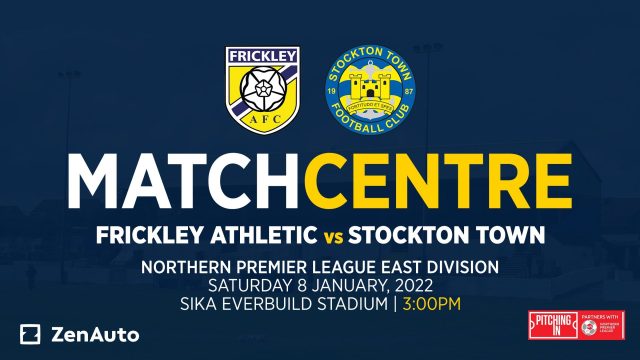 FRICKLEY ATHLETIC vs STOCKTON TOWN Competition: Northern Premier League Division One East Date: Saturday 8 January, 2022 Kick-Off: 3:00pm Entry: £10 Adult, £7 Concession, £5