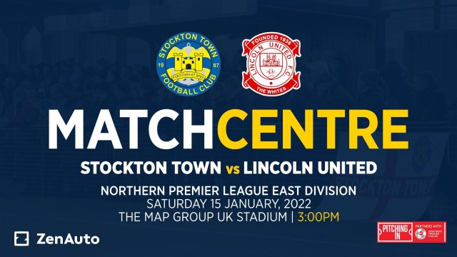 STOCKTON TOWN vs LINCOLN UNITED Competition: Northern Premier League East Division Date: Saturday 15th January, 2022 Kick-Off: 3:00pm Entry: £8 Adult, £6 Concession, £2 Under-16s
