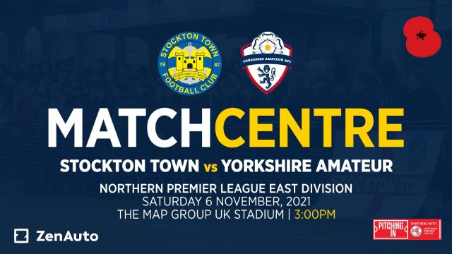 STOCKTON TOWN vs YORKSHIRE AMATEUR Competition: Northern Premier League East Division Date: Saturday 6 November, 2021 Kick-Off: 3:00pm Entry: £8 Adult, £6 Concession, £2 Under-16s