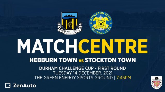 HEBBURN TOWN vs STOCKTON TOWN Competition: Durham Challenge Cup – First Round Date: Tuesday 14 December, 2021 Kick-Off: 7:45pm Entry: £7 Adult, £5 Concession, £2