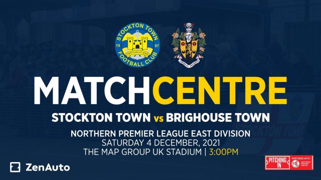STOCKTON TOWN vs BRIGHOUSE TOWN Competition: Northern Premier League East Division Date: Saturday 4 December, 2021 Kick-Off: 3:00pm Entry: £8 Adult, £6 Concession, £2 Under-16s