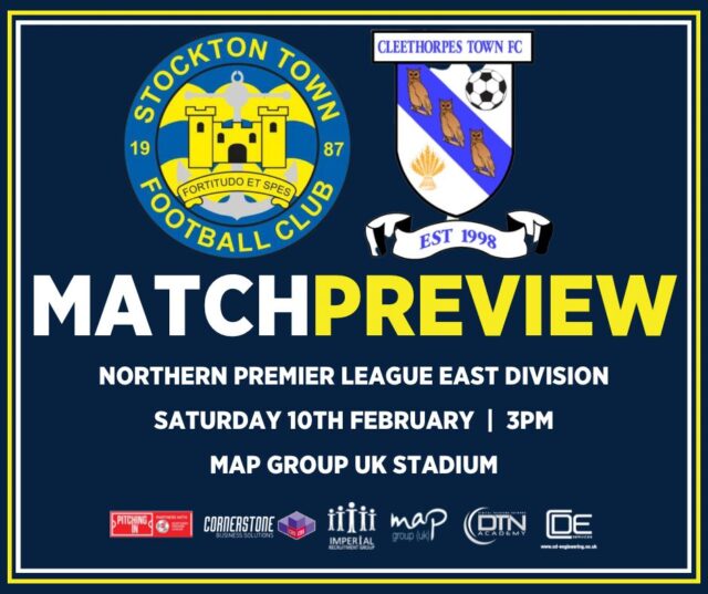 STOCKTON TOWN VS CLEETHORPES TOWN COMPETITION: Northern Premier League East Division – Matchday 25 DATE: Saturday 10th February 2024 KICK-OFF: 15:00 ENTRY: £9 Adult, £7