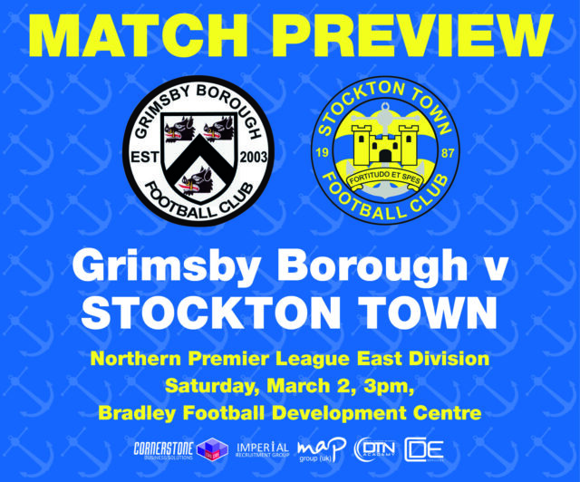 GRIMSBY BOROUGH v STOCKTON TOWN COMPETITION: Northern Premier League East DATE: Saturday 2nd March 2023 KICK-OFF: 3:00PM ENTRY: £9 Adult, £6 Concession GROUND: Bradley Football