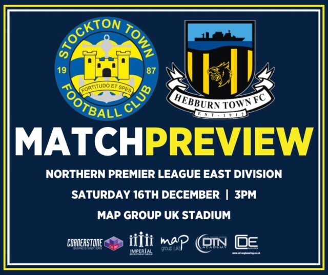 STOCKTON TOWN VS HEBBURN TOWN COMPETITION: Northern Premier League East Division DATE: Saturday 16th December, 2023 KICK-OFF: 15:00 ENTRY: £9 Adult, £7 Concession, £3 kids