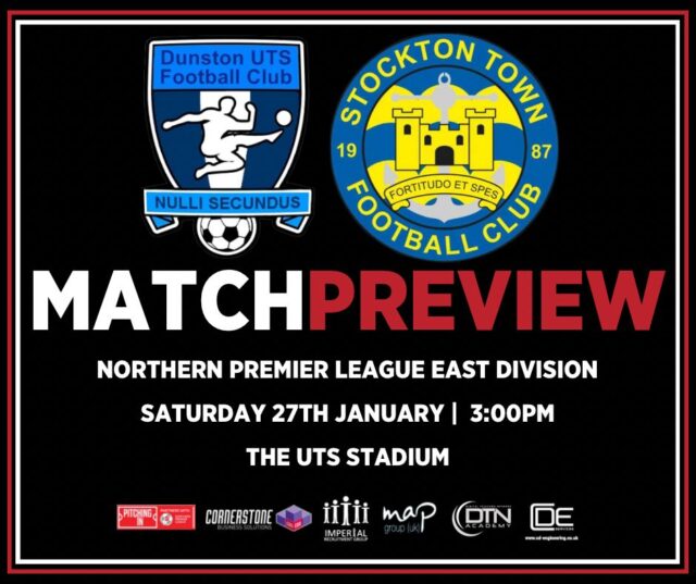 DUNSTON UTS v STOCKTON TOWN COMPETITION: PitchingIn Northern Premier League East Division DATE: Saturday 27th January, 2024 KICK-OFF: 3:00PM ENTRY: £10 Adult, £6 Concession, £3 Under-16 GROUND: UTS
