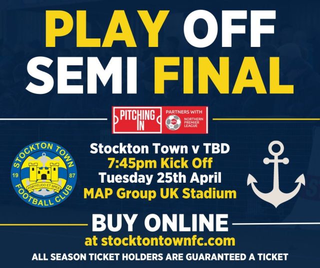 Stockton Town can confirm that our Northern Premier League East Division play-off semi-final will NOT be an all ticket fixture. The Anchors have secured a 2nd place