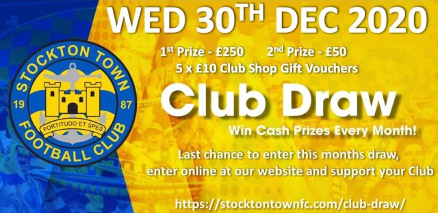 Your last chance to enter December’s Club Draw, which will be drawn on Wednesday 30th December with the draw held and results published at 7pm.