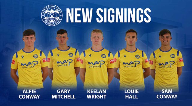 Stockton Town Football Club are delighted to announce five of the club’s Under-18 players have signed with the first team. Alfie Conway, Sam Conway, Louie