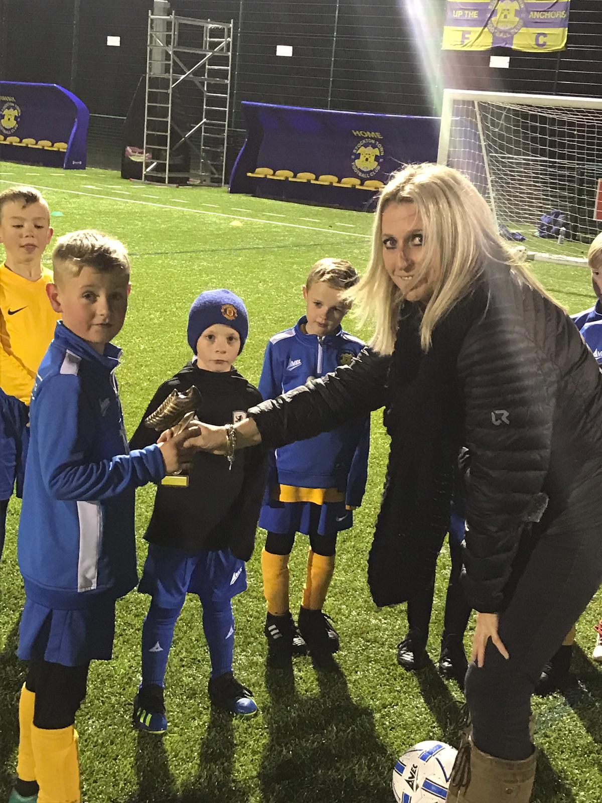 Grass Roots founder Shelley Nolan recently attended a Stockton Town training session and presented Tyler with his award, commenting what a polite young man Tyler was which is something I see week in week out.