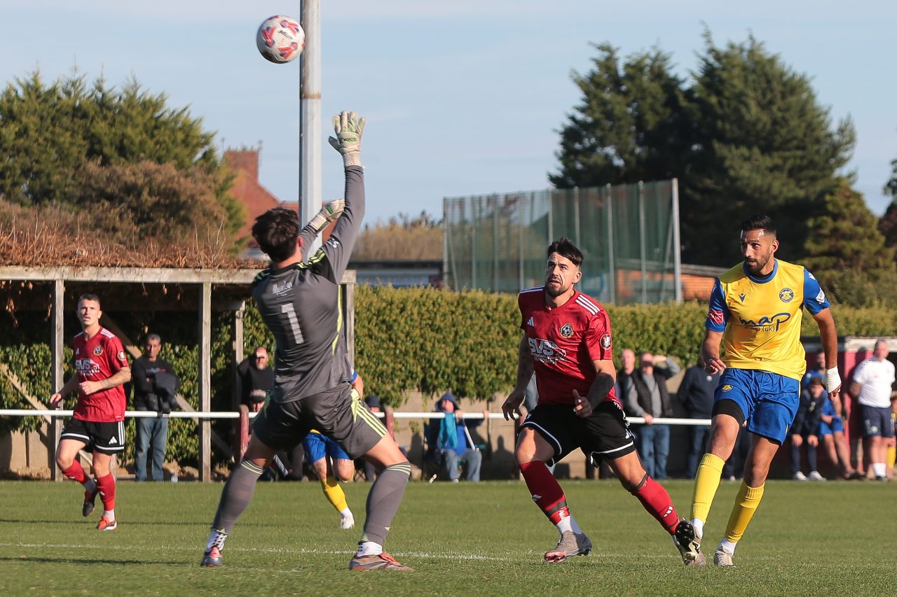 Despite having just ten men, Farringdon still pushed forward when they could and they almost levelled when Kevin Humble broke through on goal but Nathan Harker stayed big to save with his body.