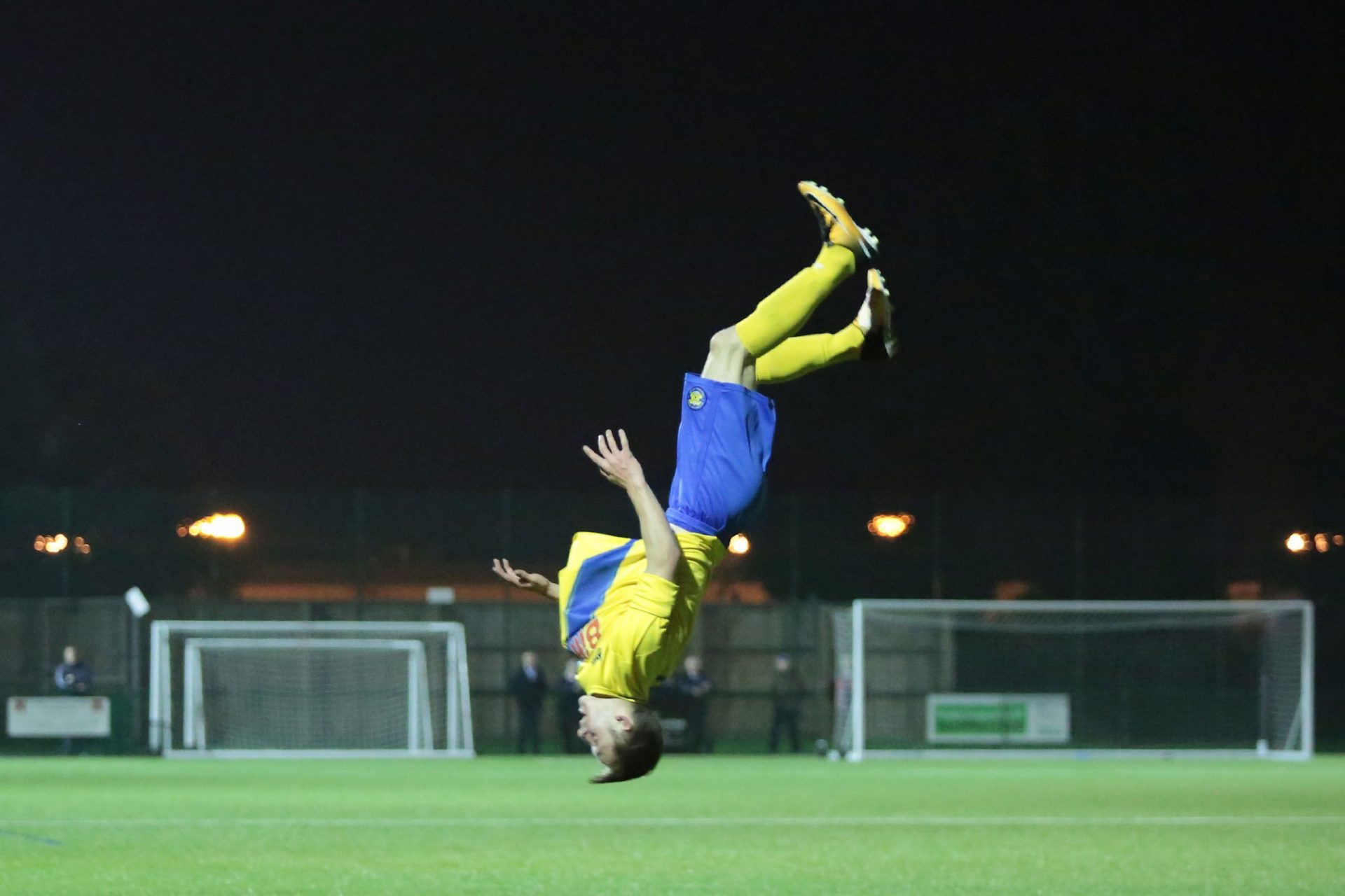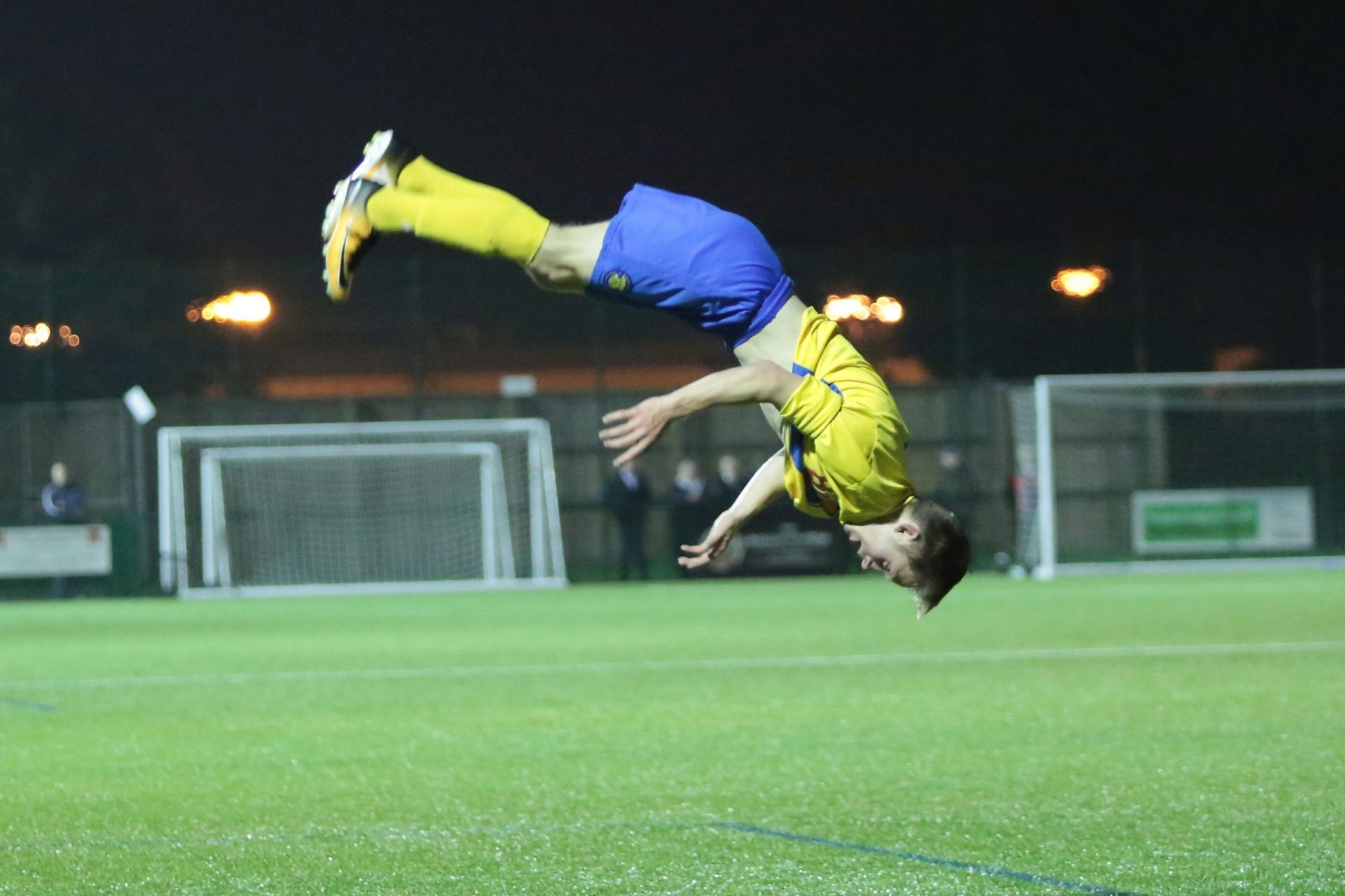 The Anchors were flying now and opening up Dunston at will, it was no surprise when they went ahead on 33 mins when Hayes produced a great finish after a slick move involving Craggs and Owens, check out the match photos for the now standard Kev Hayes back flip celebrations. The game was being played at such a pace now and Dunston had an opportunity to equalise but Heslops shot missed the target. Stockton increased their lead on 37 mins when Carter and Hayes linked up down the right and the overlapping Carter was fed in with a disguised pass and burst into the box and slid it under the advancing keeper.