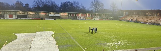 Tonight’s game against FC United of Manchester has been called off due to a waterlogged pitch. A new date will be communicated in due course.